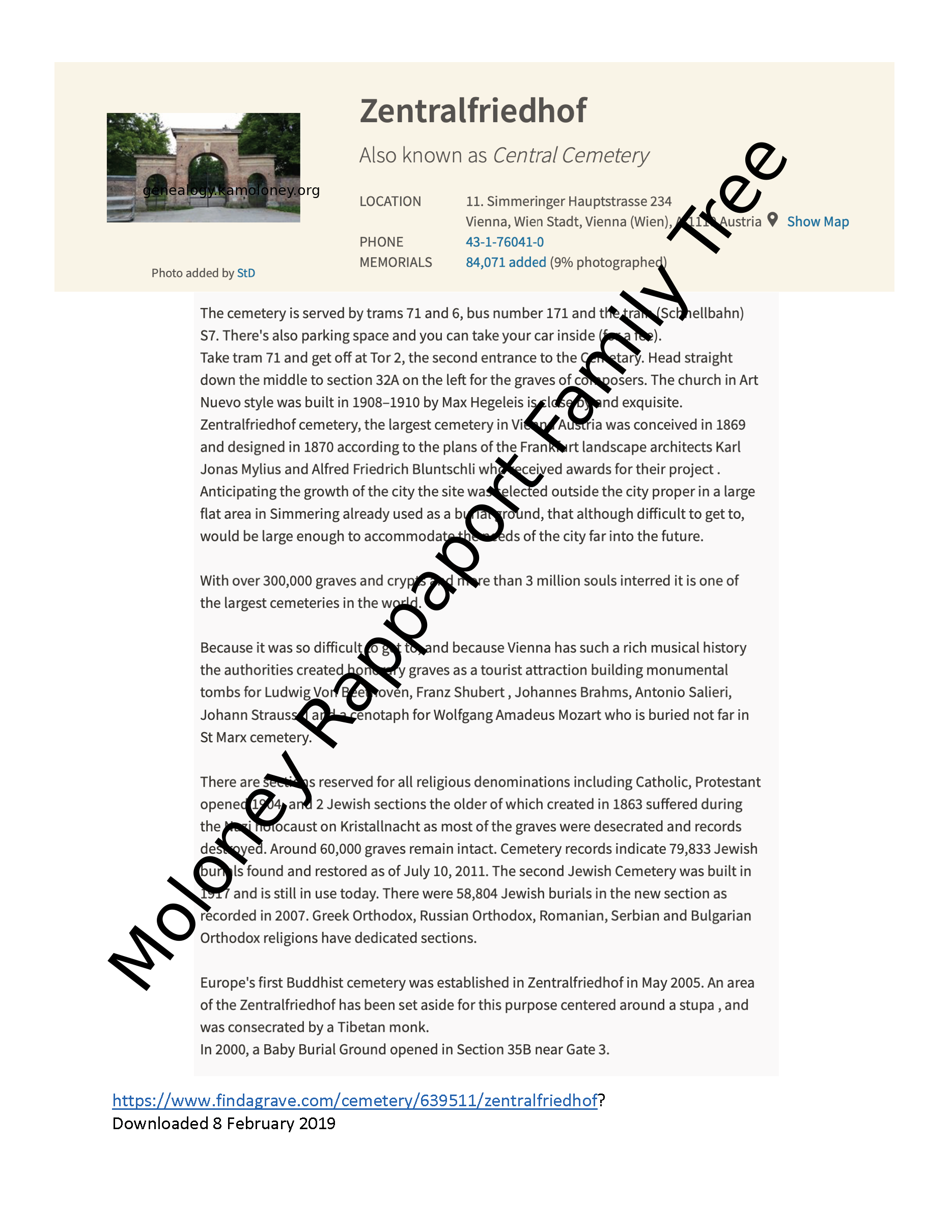 | Burial of a maternal grandfather | Jakob Hajek Type: Interment about July 2, 1932 (Age 11 years) Age: 77Address: Zentralfriedhof