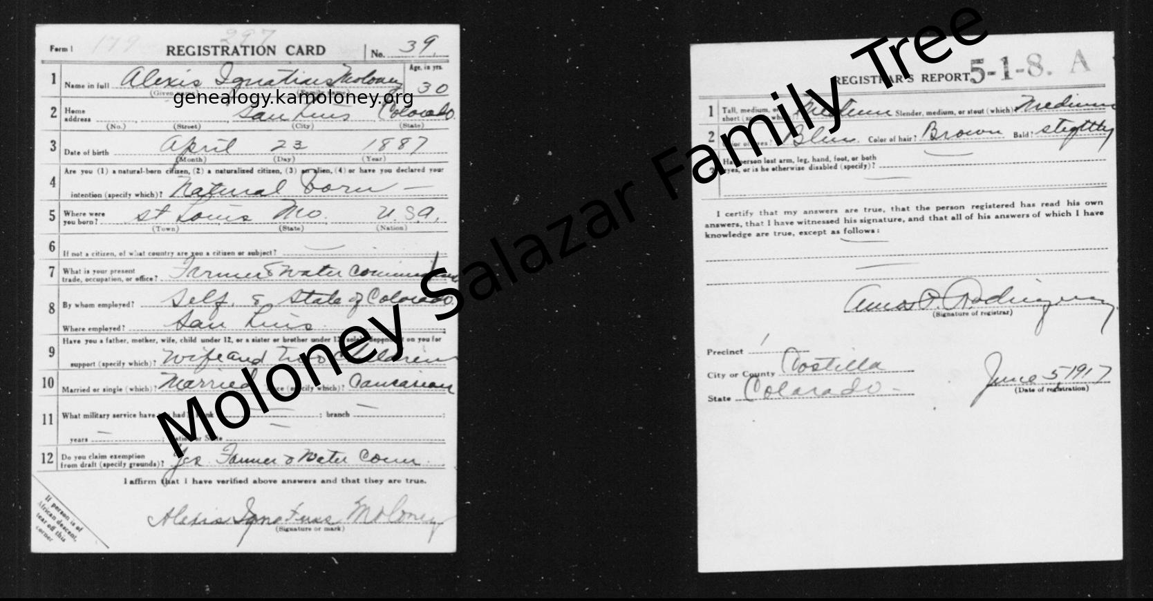 | Shared note | In the 1920's A.I. Moloney developed a seed company in San Luis, Colorado, through which he sold seeds by mail order and directly to market gardeners. He moved the business and his family to Monte Vista, Colorado, in 1927. In the early 1940's he developed a fertilizer mixing plant to sell commercial fertilizer to potato and barley farmers in the area. It was the second oldest mixing plant in Colorado. The business was incorporated as the Moloney Seed Company. The brand name of his fertilizer was Better Spuds. The farmers called it B.S. The business was sold to the Pure Oil Company in 1964. His sons, Emmett A. Moloney and LeRoy D. "Bud" Moloney, and his wife, Casilda S. Moloney, were also stockholders in the corporation |